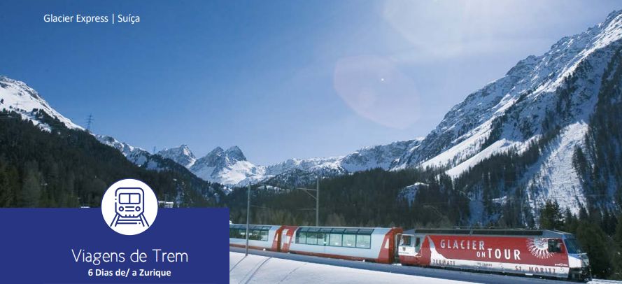 Viagem de Trem 6 Dias de/ a Zurique, sem acompanhante. Itinerário: Zurique (sem hospedagem), Lucerna, Titlis, Golden Pass Line, Montreux , Täsch, Gornergrat, Zermatt, Glacier Express, Zurique (sem hospedagem)